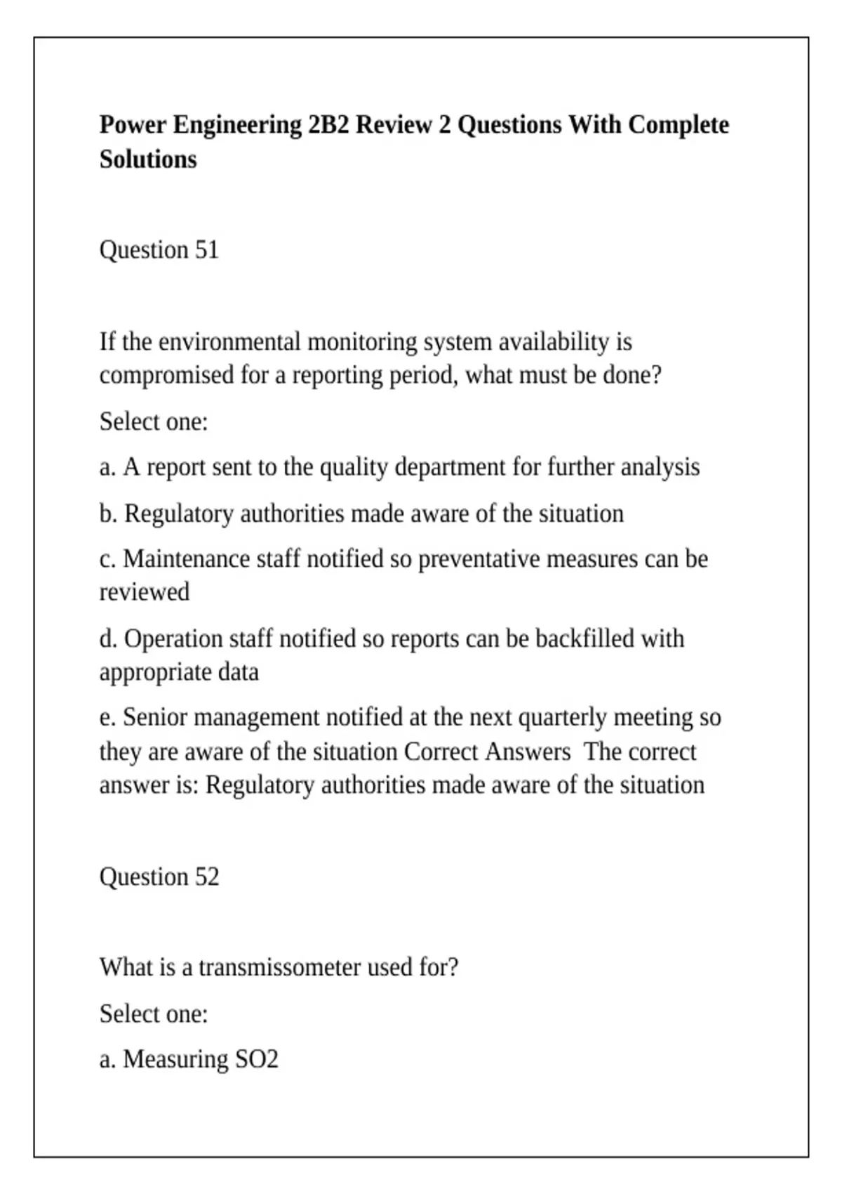 Power Engineering 2B2 Review 2 Questions With Complete Solutions
