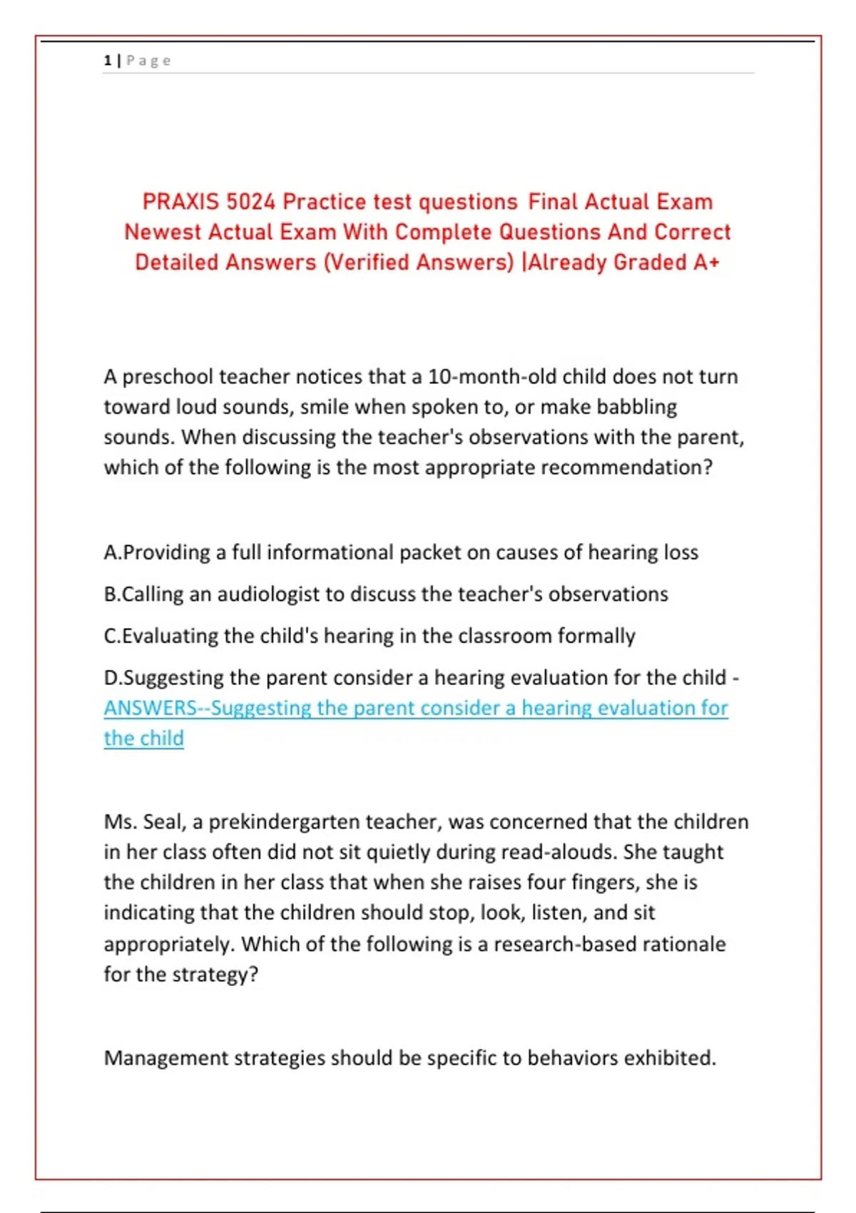 ANSWERS--Suggesting the parent consider a hearing evaluation for