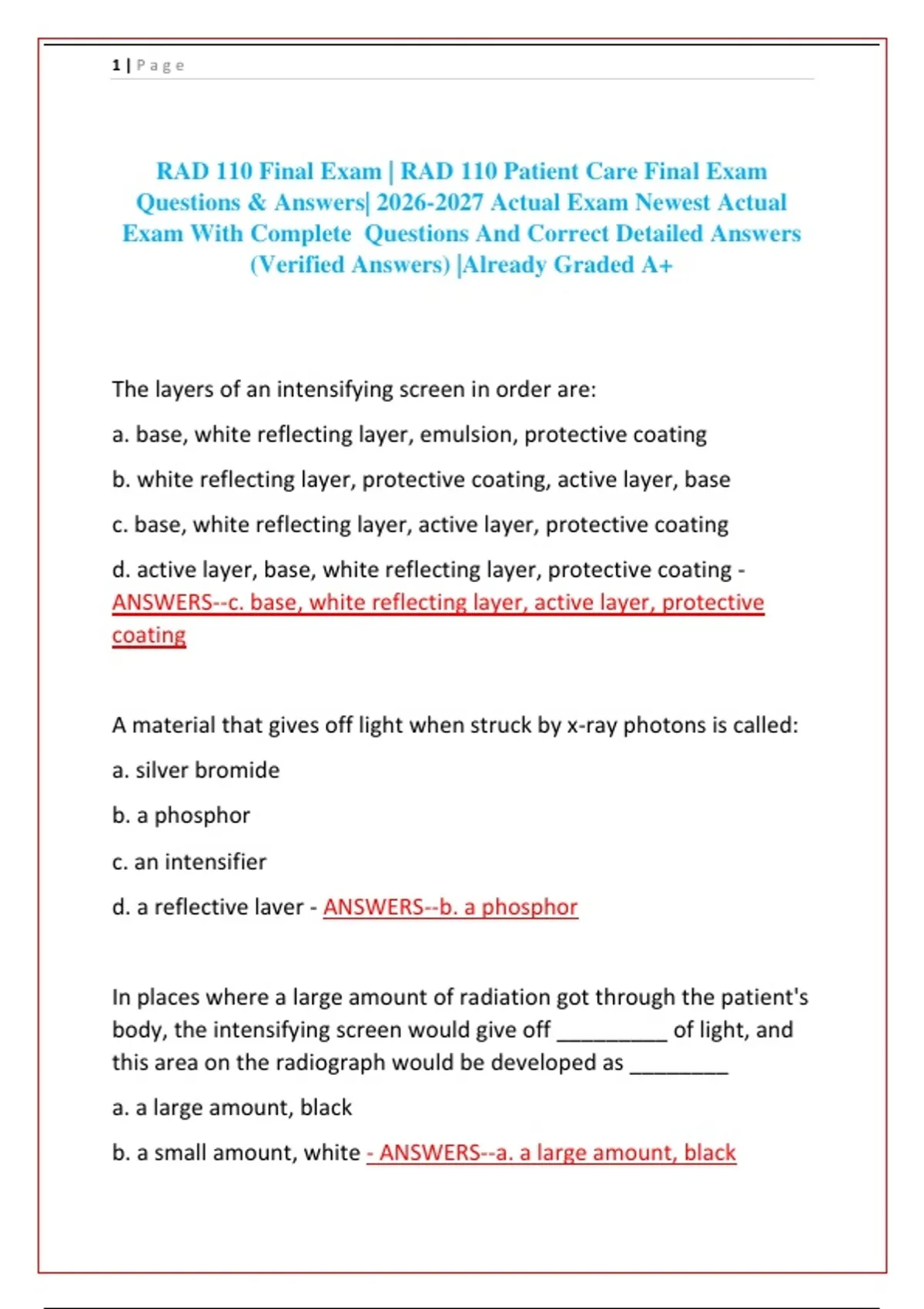 RAD 110 Final Exam | RAD 110 Patient Care Final Exam