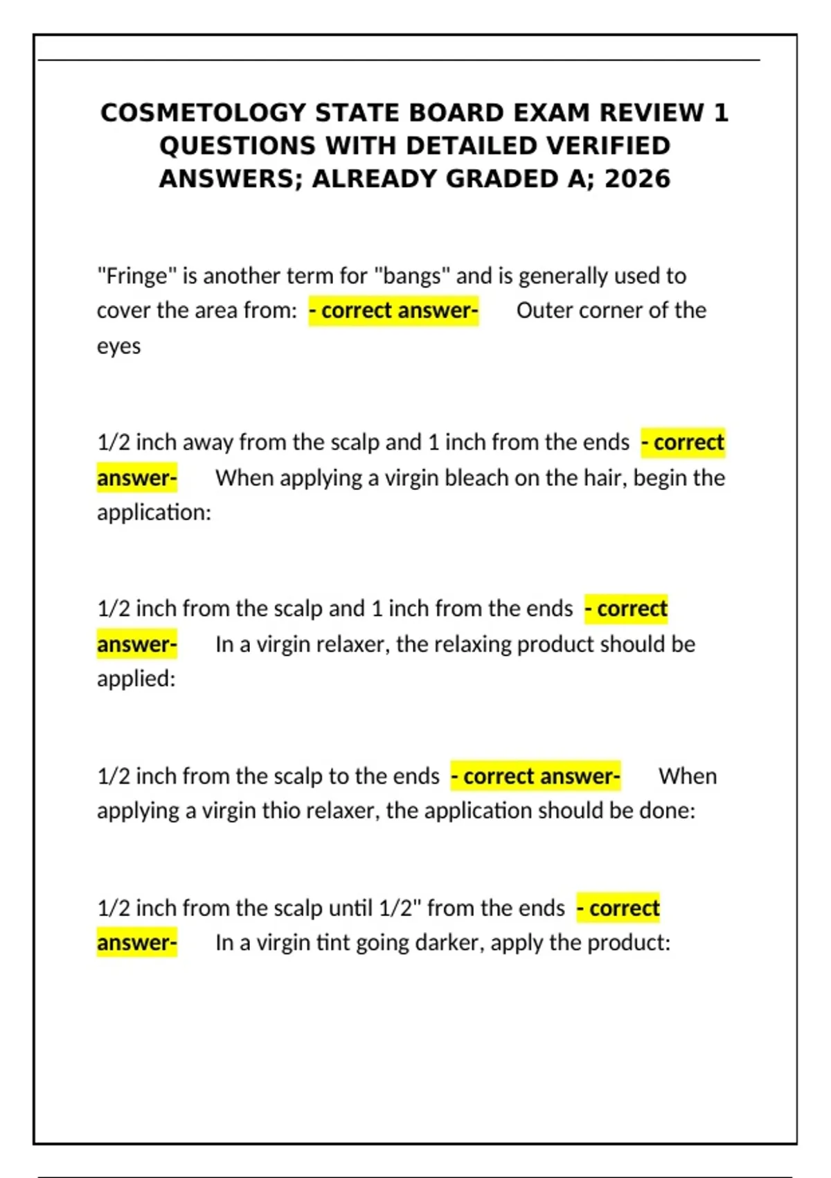 Prepare for your cosmetology state board exam with this 2026 review. Features detailed questions and verified, already graded A+ answers covering hair, skin, nails, and regulations.
