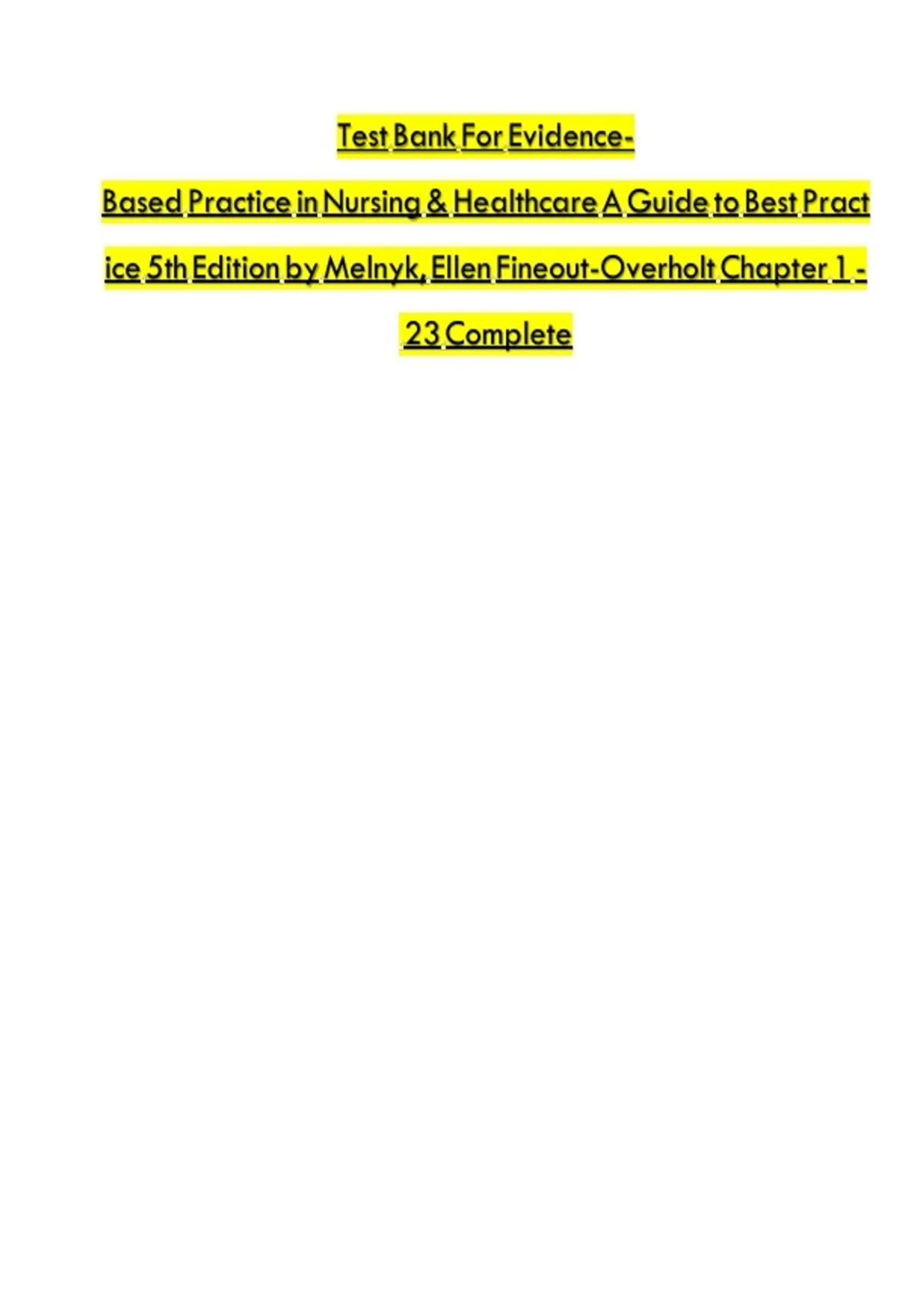 Evidence-Based Practice in Nursing & Healthcare 5th Edition Melnyk Test Bank