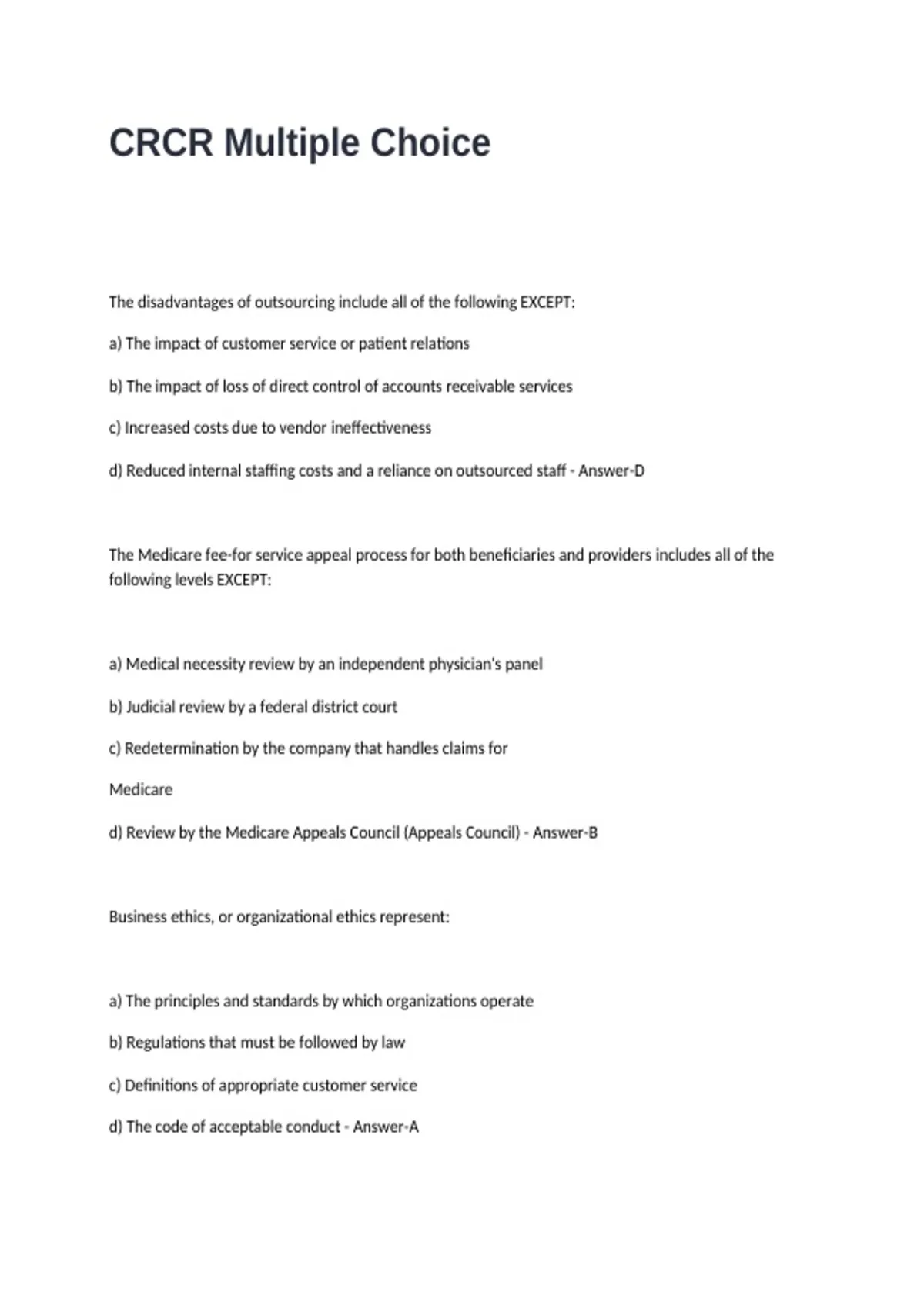 CRCR Multiple Choice
