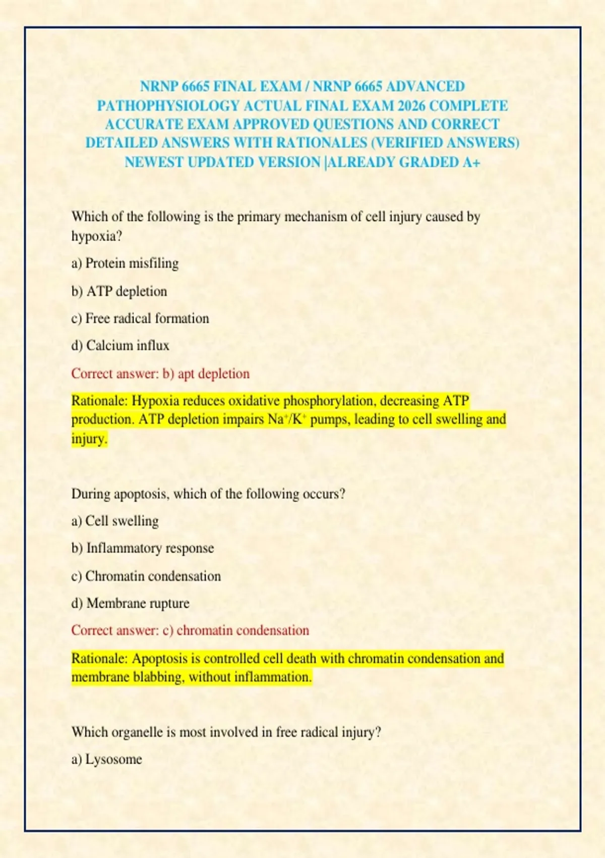 NRNP 6665 FINAL EXAM / NRNP 6665 ADVANCED PATHOPHYSIOLOGY ACTUAL FINAL EXAM 2026 COMPLETE ACCURATE EXAM APPROVED QUESTIONS AND CORRECT DETAILED ANSWERS WITH RATIONALES (VERIFIED ANSWERS) NEWEST UPDATED VERSION |ALREADY GRADED A+