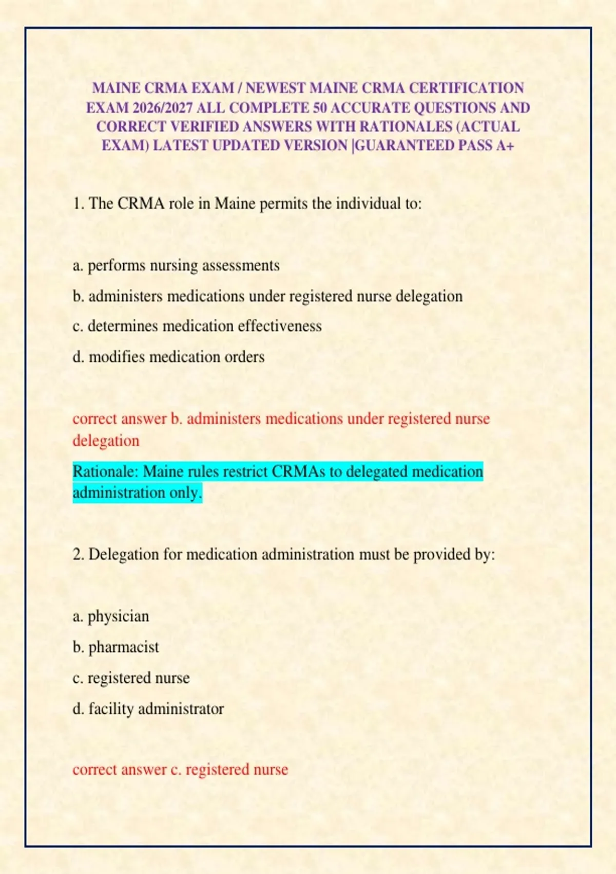 Rationale: Maine rules restrict CRMAs to delegated medication