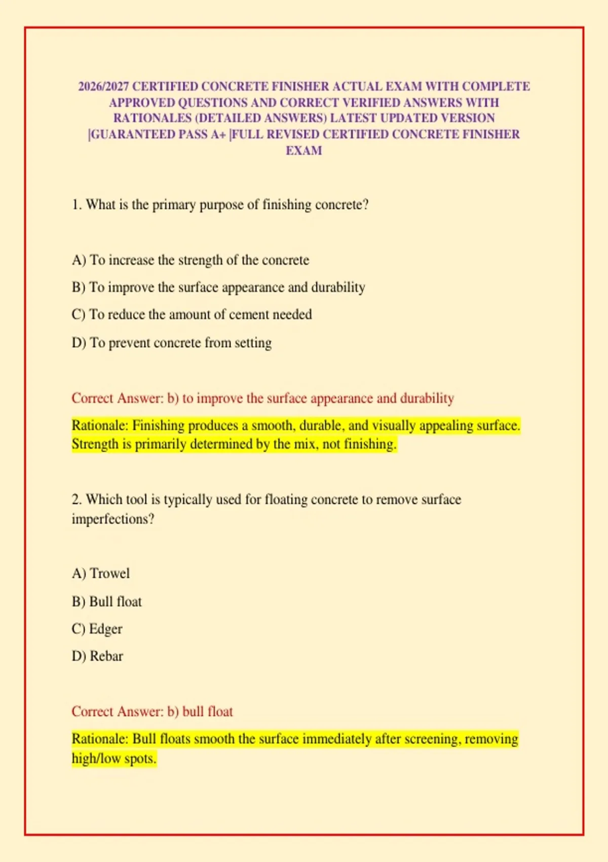 |GUARANTEED PASS A+ |FULL REVISED CERTIFIED CONCRETE FINISHER