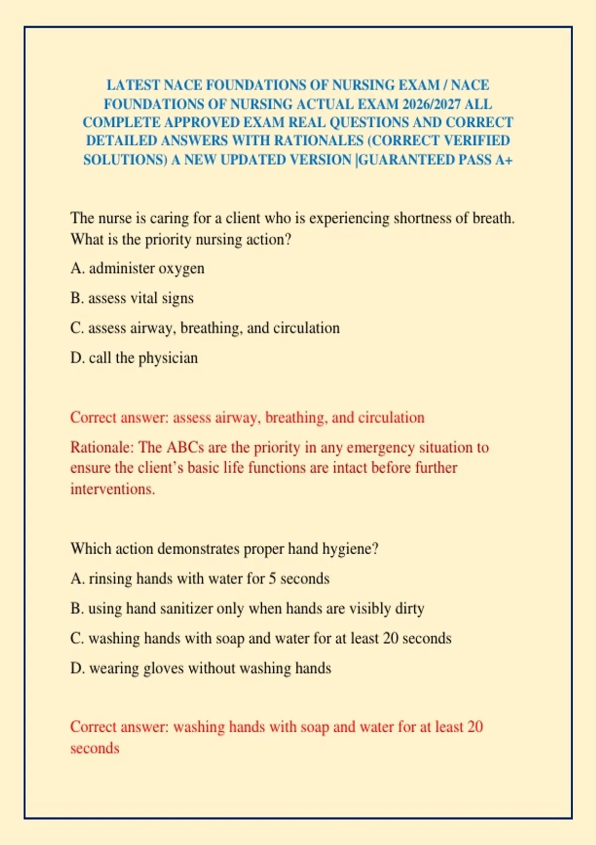 FOUNDATIONS OF NURSING ACTUAL EXAM 2026/2027 ALL