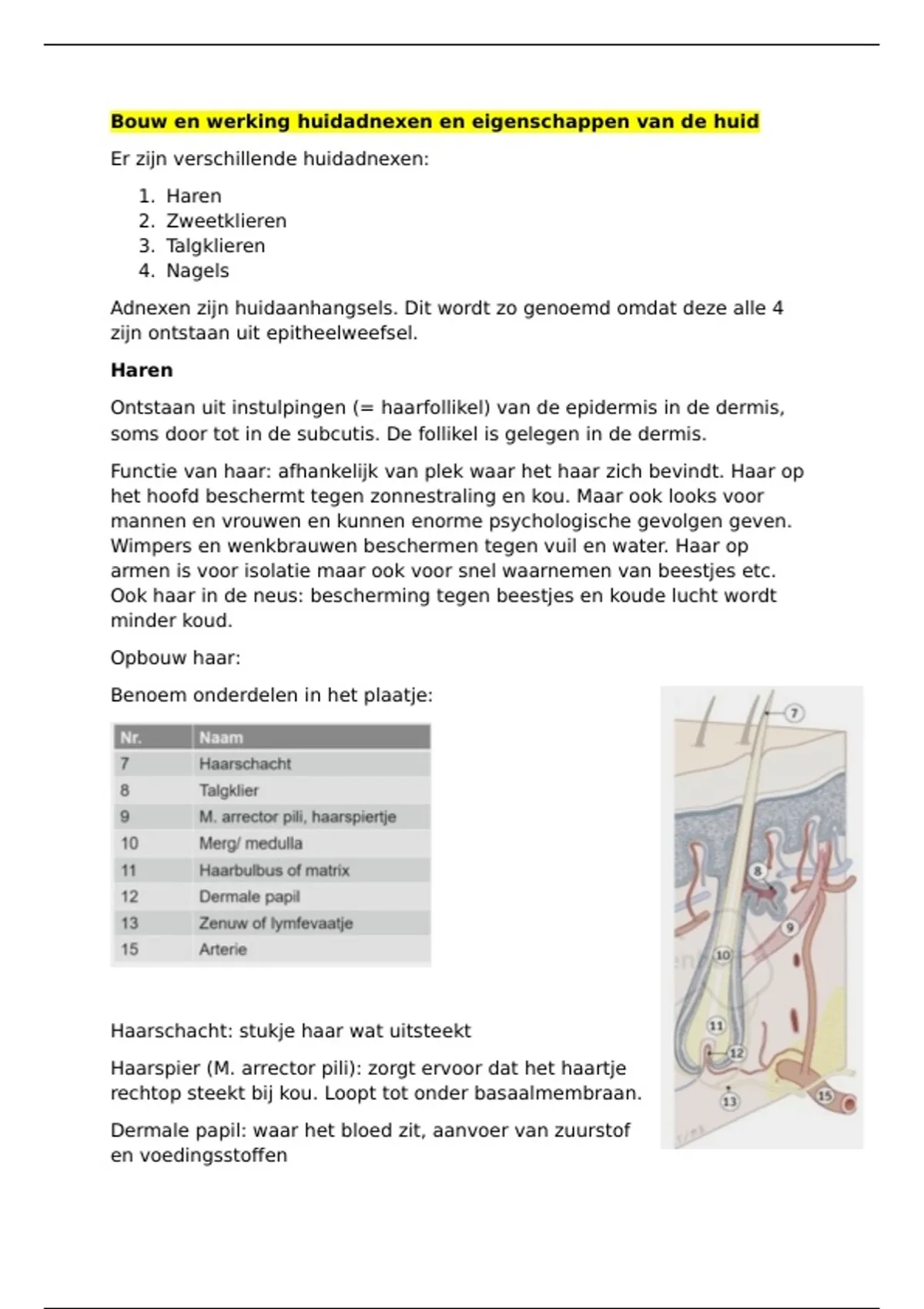 Bouw en werking huidadnexen en eigenschappen van de huid