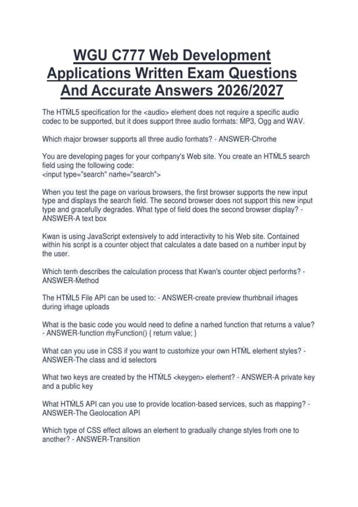 And Accurate Answers 2026/2027