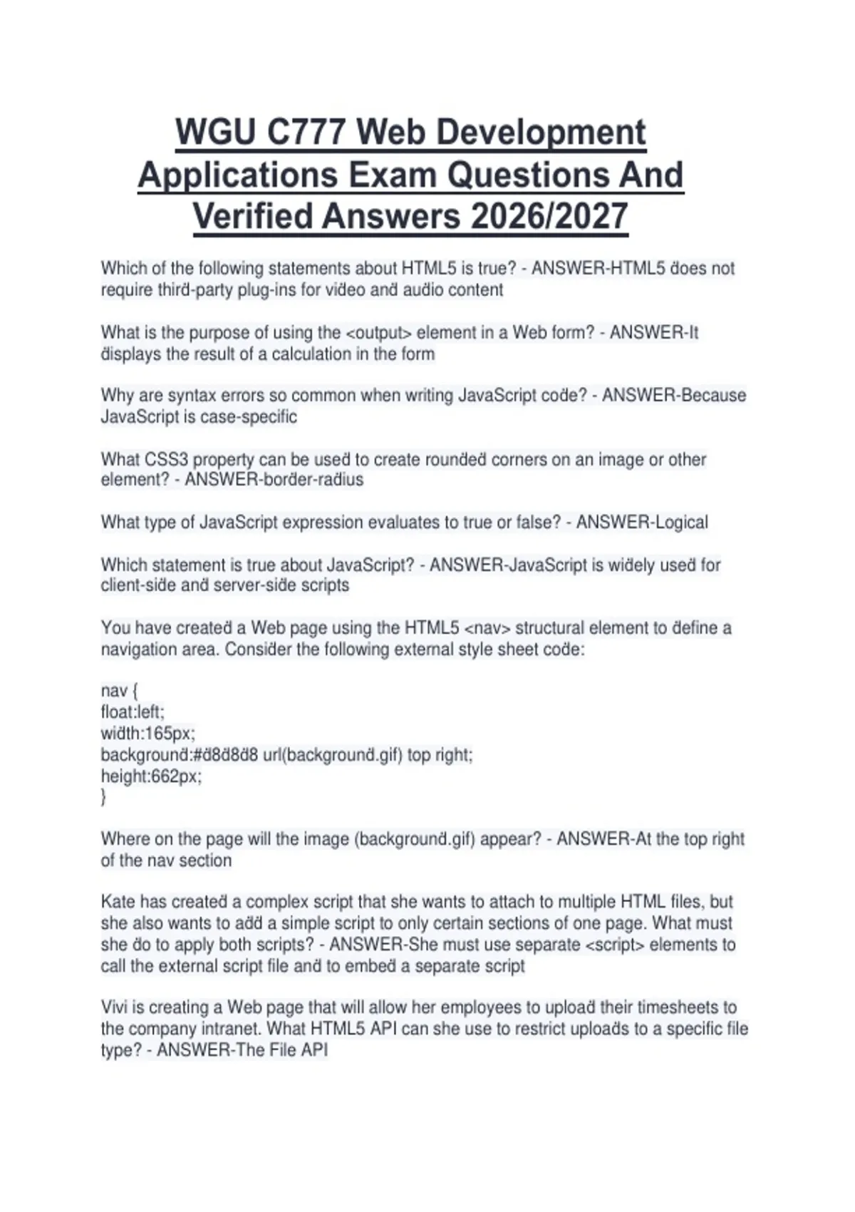 Verified Answers 2026/2027