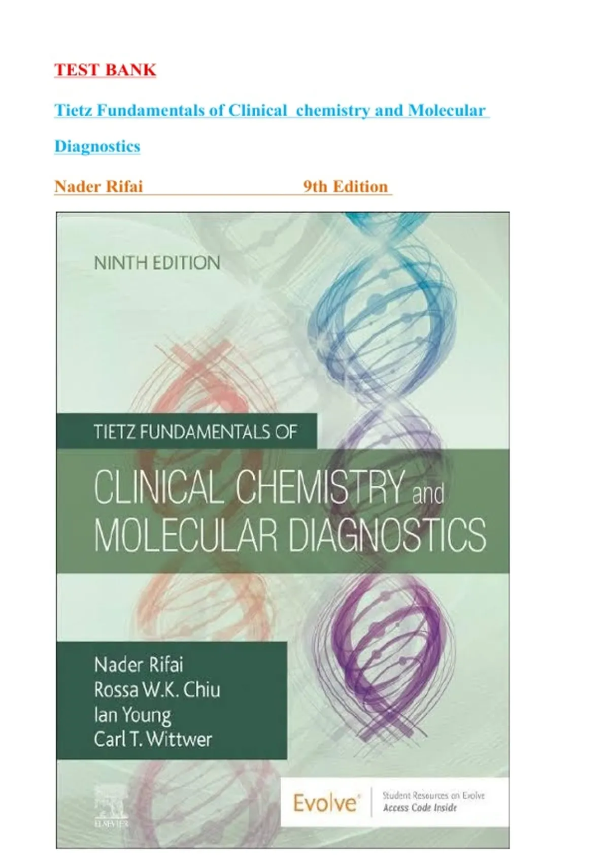 Test Bank - for Tietz Fundamentals of Clinical Chemistry and Molecular Diagnostics, 9th Edition, by Nader Rifai, Chapter 1-49 |All Chapters