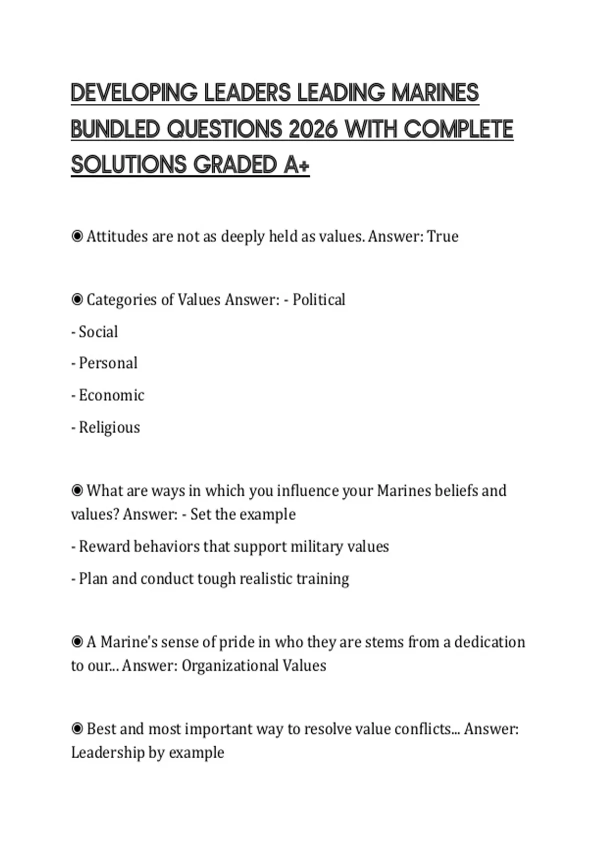 ◉ What are ways in which you influence your Marines beliefs and