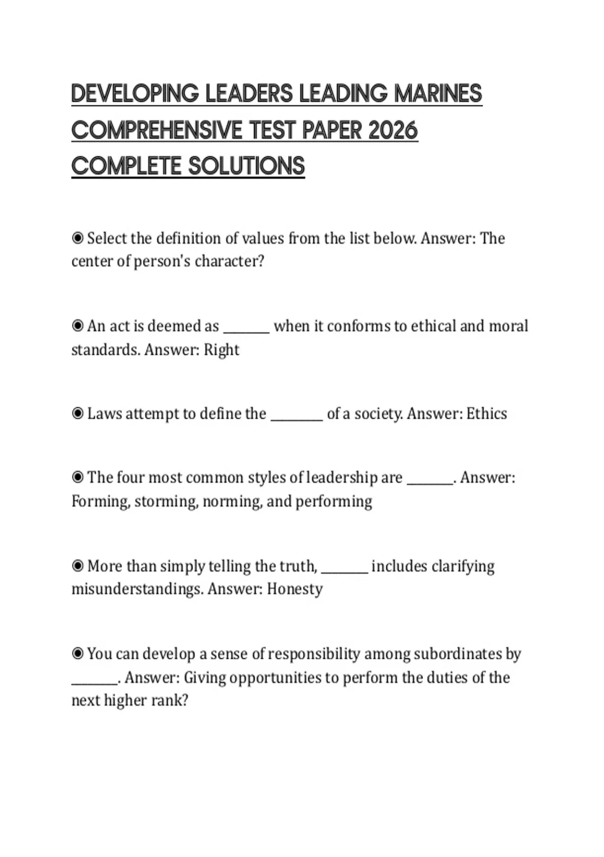 ◉ The four most common styles of leadership are ________. Answer: