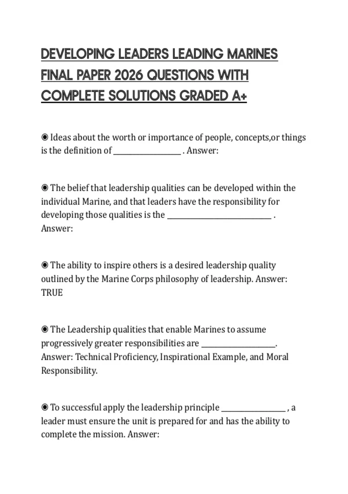 outlined by the Marine Corps philosophy of leadership. Answer: