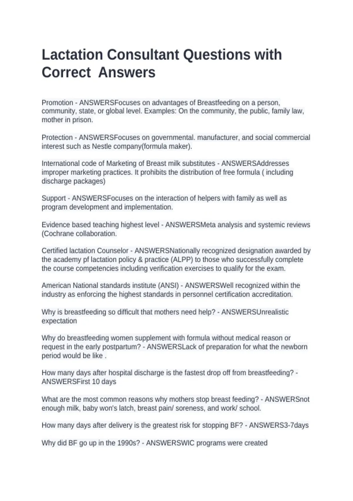 Certified lactation Counselor - ANSWERSNationally recognized designation awarded by