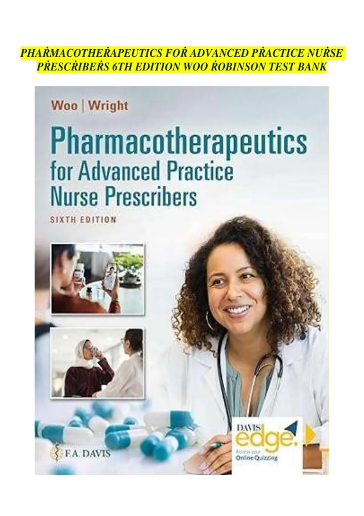 Full Test Bank for Pharmacotherapeutics for Advanced Practice Nurse Prescribers 5th & 6th Editions by Teri Moser Woo and Terri S. Robinson Complete Coverage Verified Questions & Correct Answers Advanced Pharmacology / Prescribing Authority / Geriatric Pha