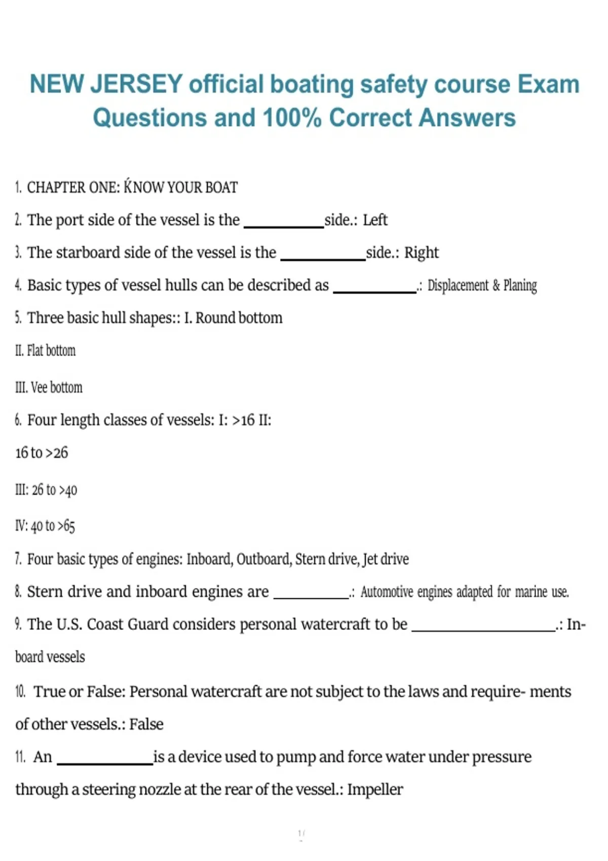 7. Four basic types of engines: Inboard, Outboard, Stern drive, Jet drive