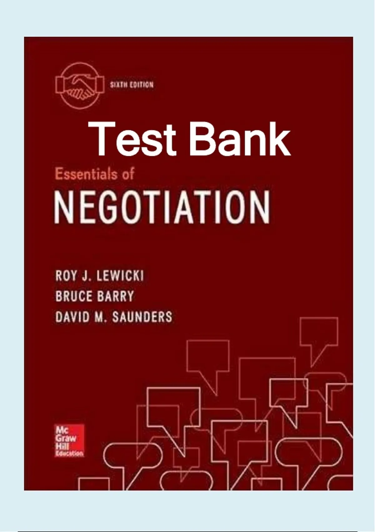 Essentials of Negotiation - Test Bank for sixth edition by Roy J. Lewicki, Bruce Barry, David M. Saunders
