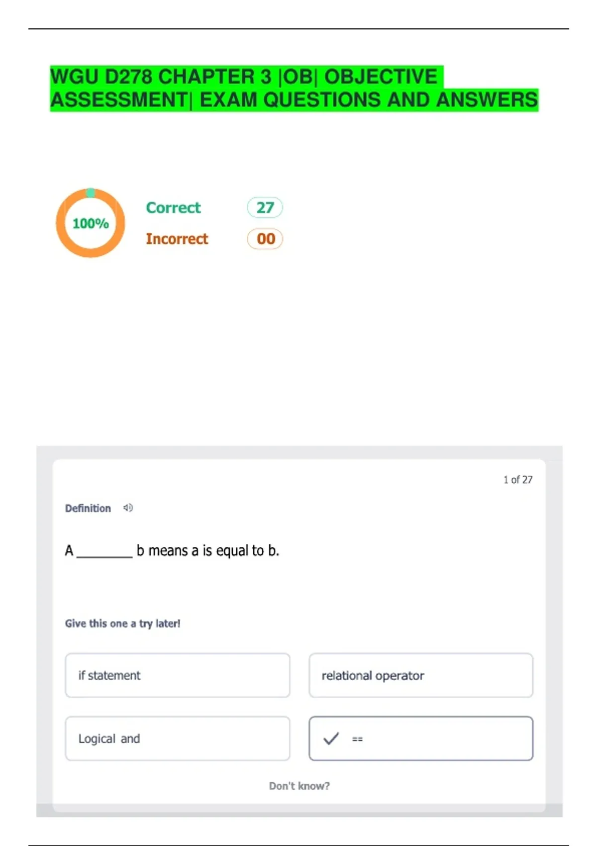 WGU D278 CHAPTER 3| OA| OBJECTIVE ASSESSMENT| EXAM QUESTIONS AND ANSWERS