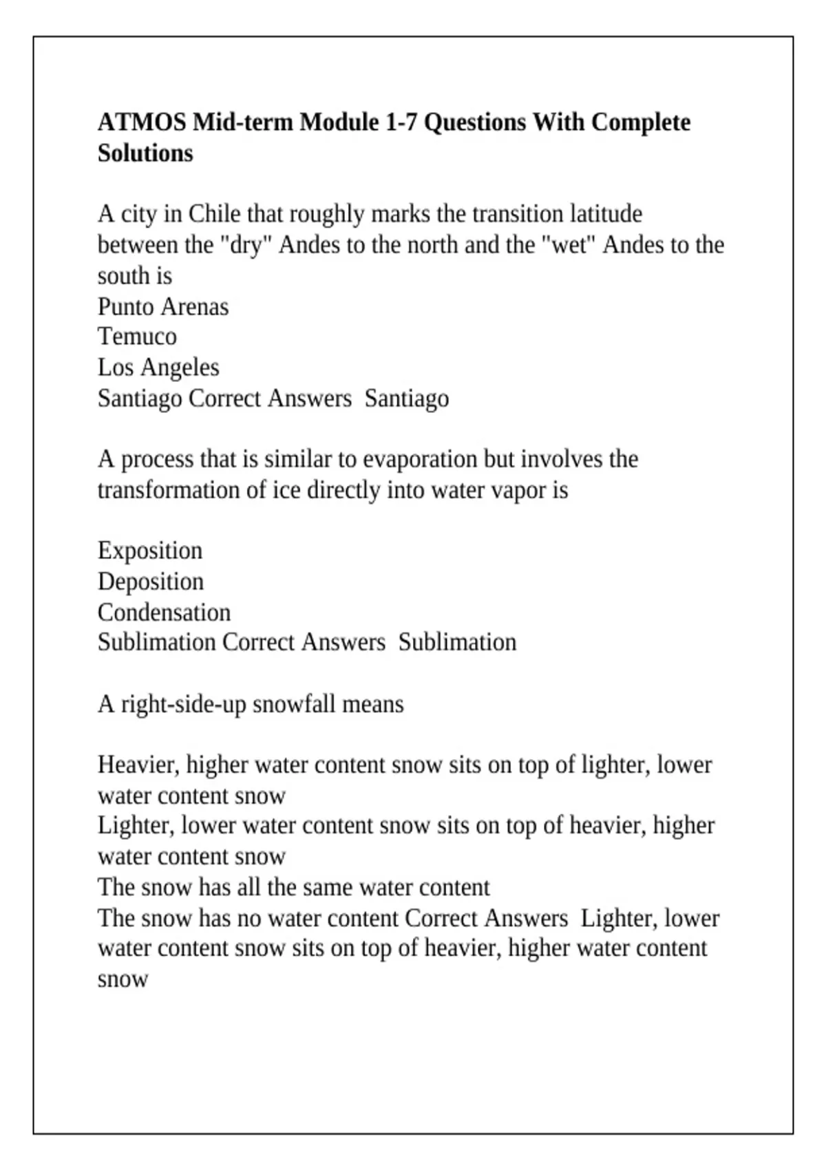ATMOS Mid-term Module 1-7 Questions With Complete Solutions