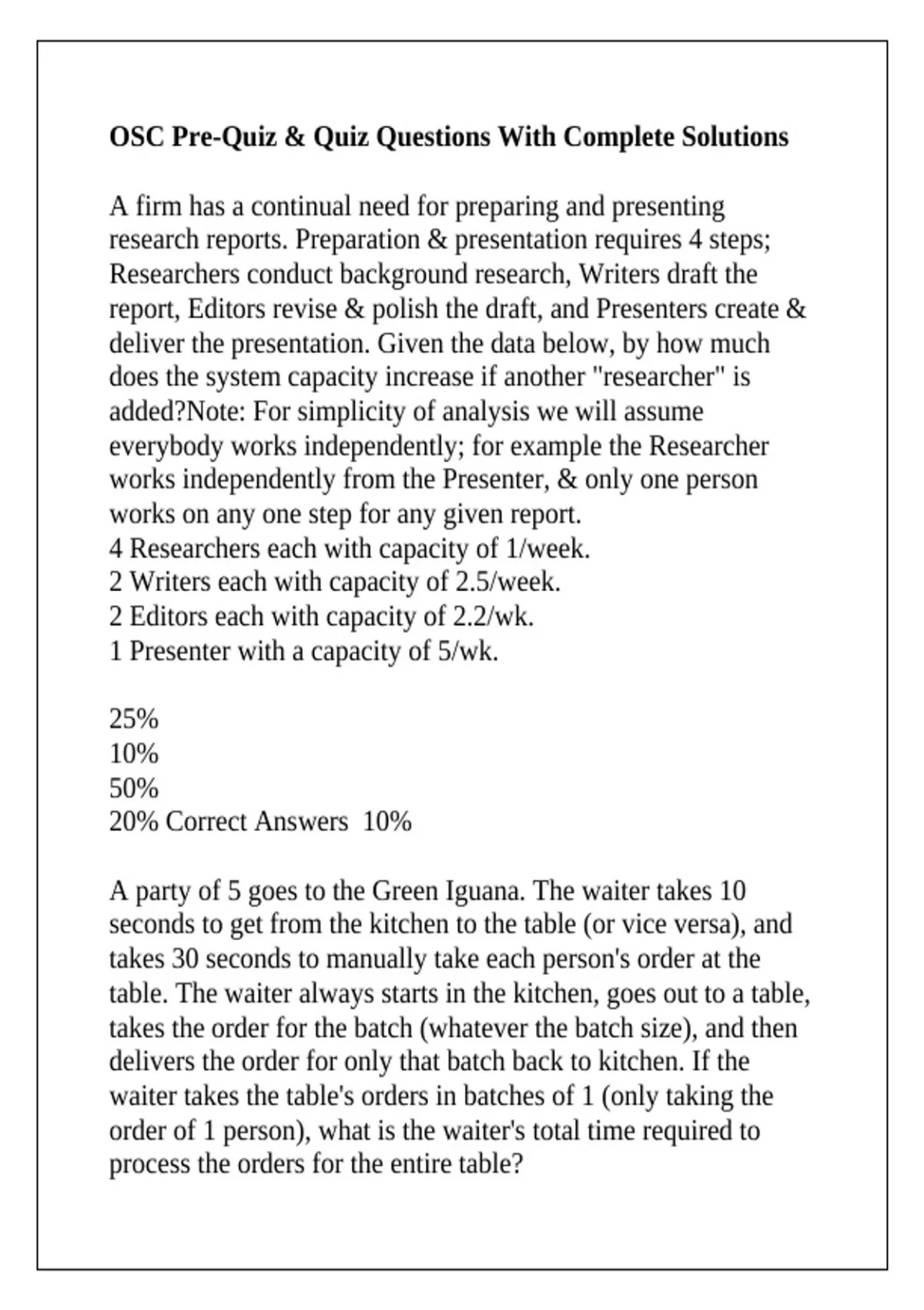 OSC Pre-Quiz & Quiz Questions With Complete Solutions
