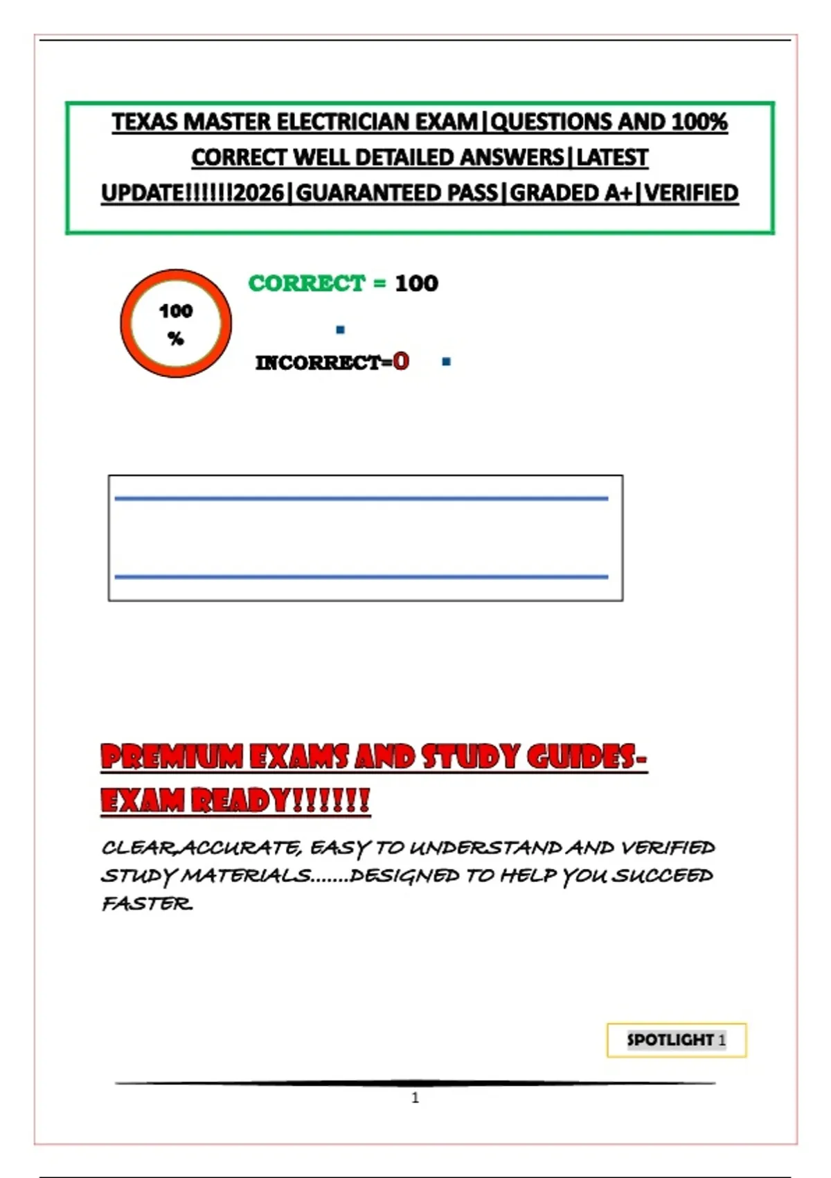 TEXAS MASTER ELECTRICIAN EXAM|QUESTIONS AND 100% CORRECT WELL DETAILED ANSWERS|LATEST UPDATE!!!!!!2026|GUARANTEED PASS|GRADED A+|VERIFIED