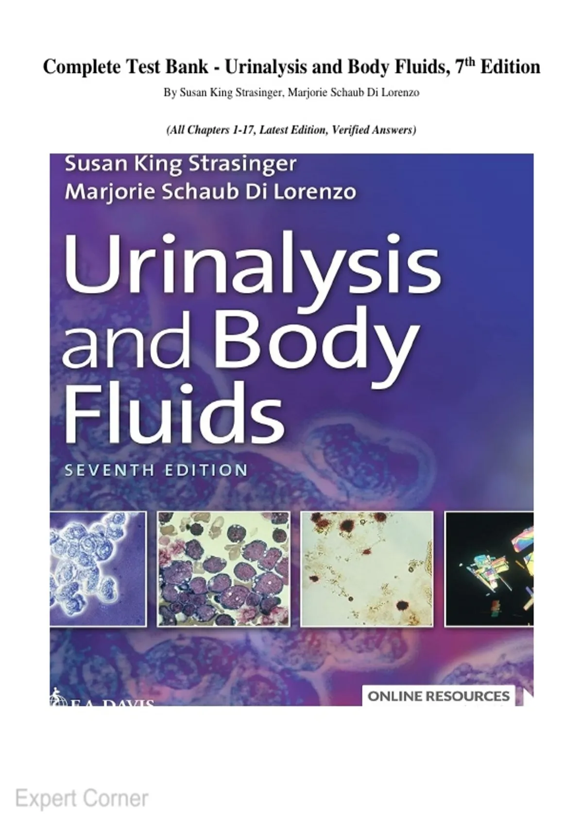 Complete Test Bank - Urinalysis and Body Fluids, 7th Edition. By Susan King Strasinger, Marjorie Schaub Di Lorenzo. (All Chapters 1-17, Latest Edition, Verified Answers)