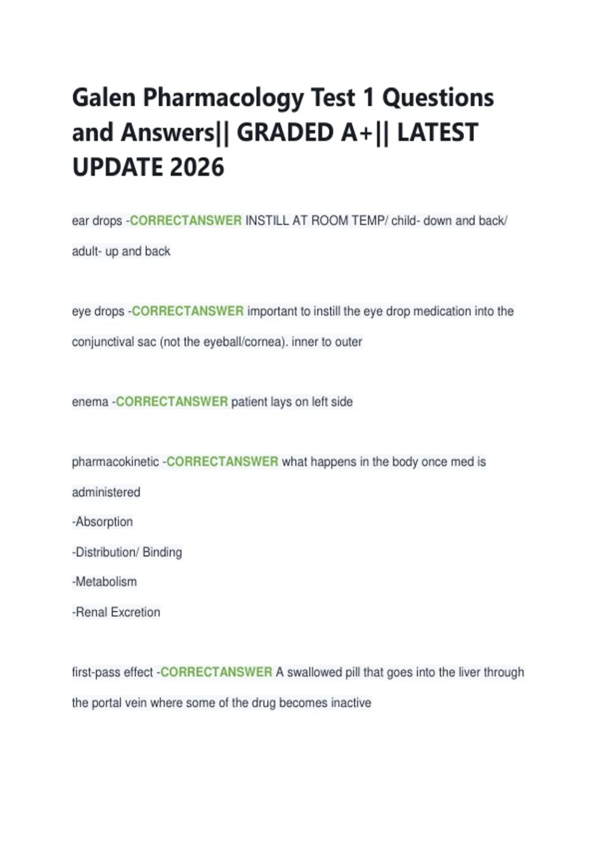 Galen Pharmacology Test 1 Questions and Answers|| GRADED A+|| LATEST UPDATE 2026
