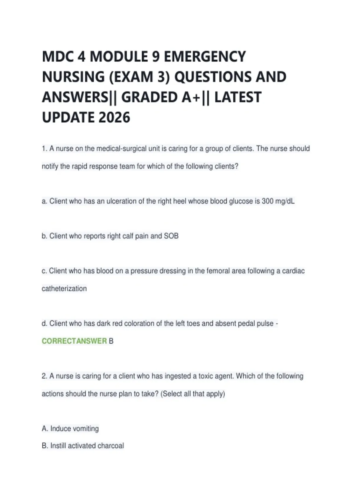 MDC 4 MODULE 9 EMERGENCY NURSING (EXAM 3) QUESTIONS AND ANSWERS|| GRADED A+|| LATEST UPDATE 2026
