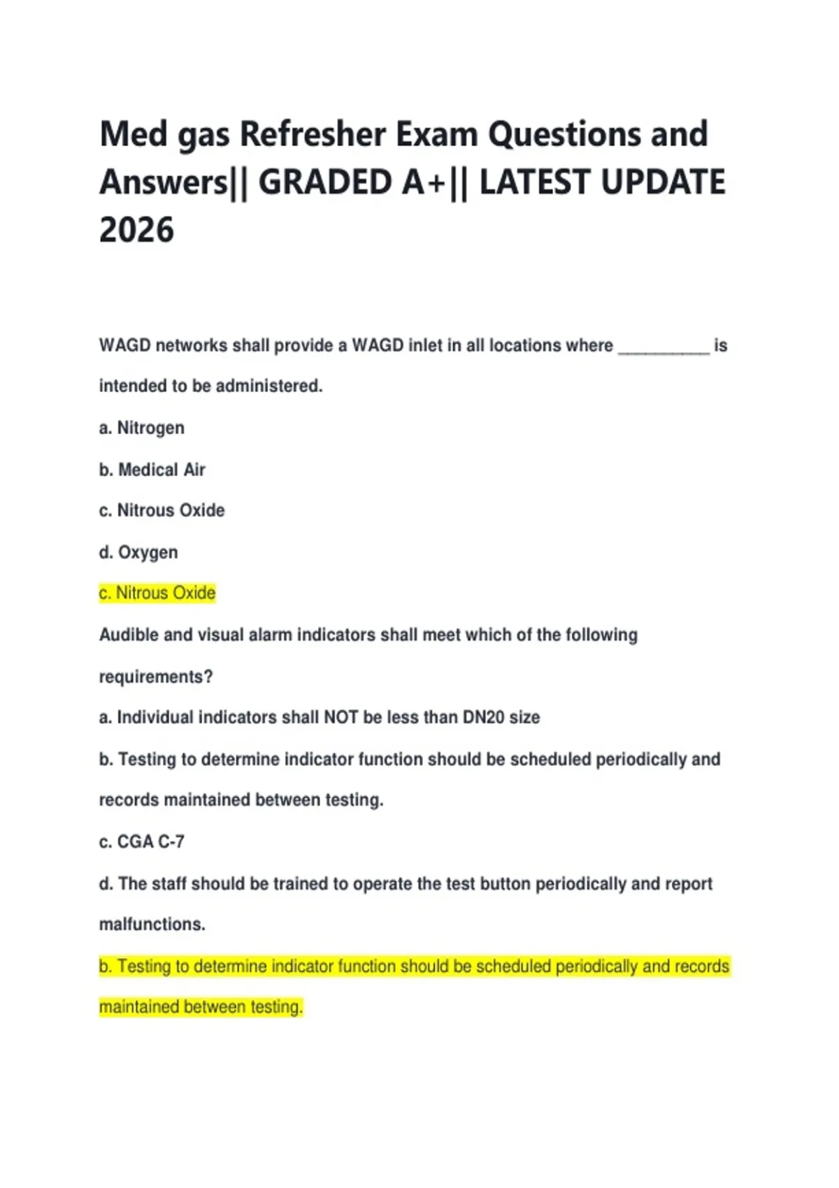 Med gas Refresher Exam Questions and