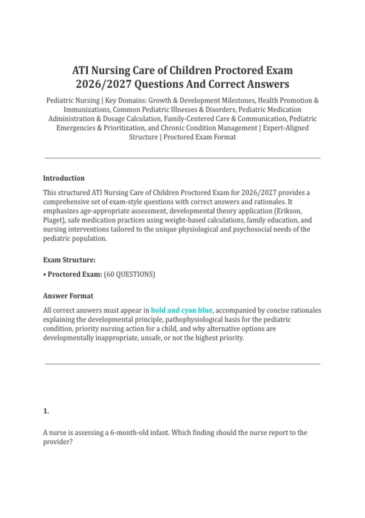 This structured ATI Nursing Care of Children Proctored Exam for 2026/2027 provides a