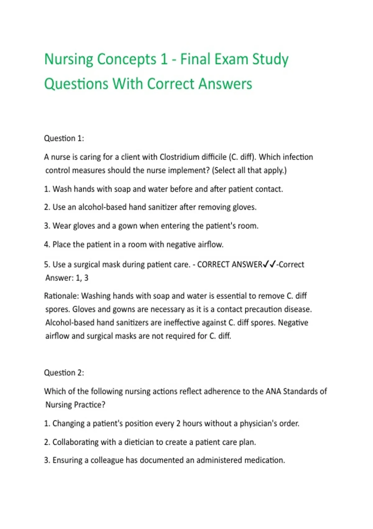 Nursing Concepts 1 - Final Exam Study Questions With Correct Answers