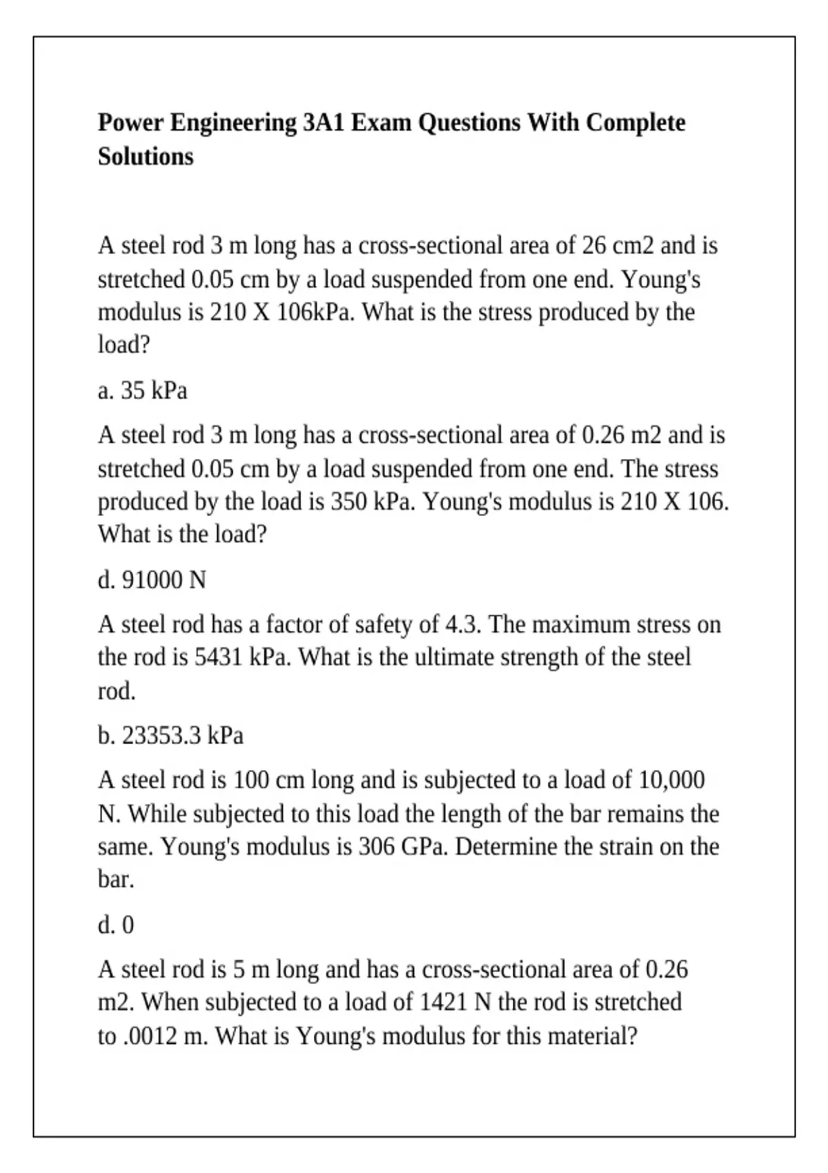 Power Engineering 3A1 Exam Questions With Complete Solutions
