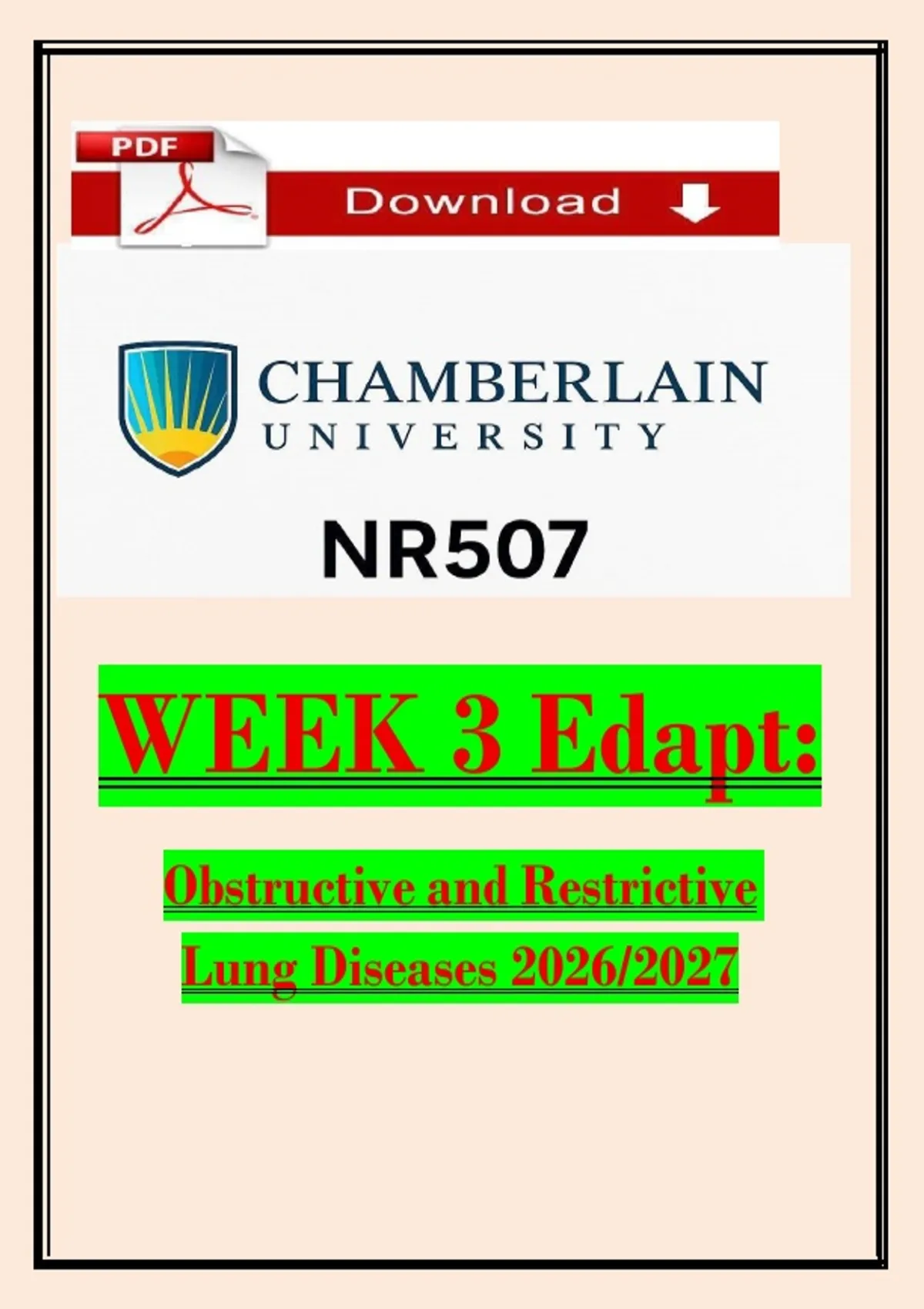 NR507 Edapt Week 3 Obstructive and Restrictive Lung Diseases/ Chronic Obstructive