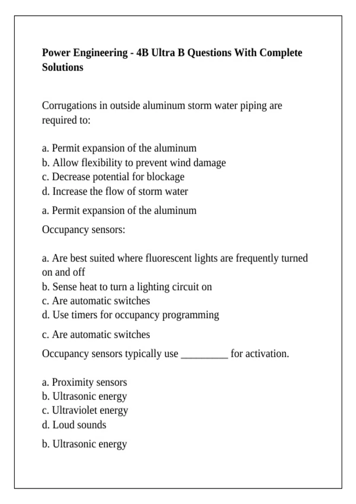 Power Engineering - 4B Ultra B Questions With Complete