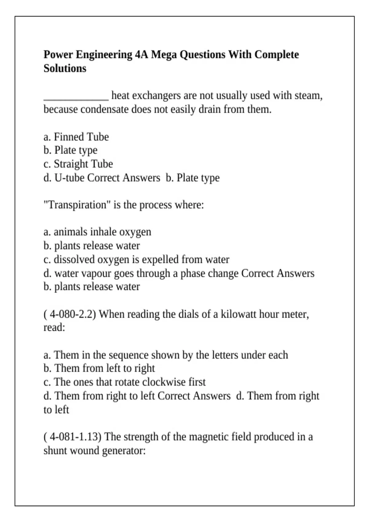 Power Engineering 4A Mega Questions With Complete