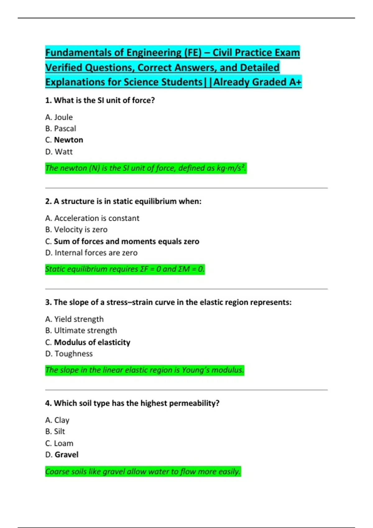 Fundamentals of Engineering (FE) – Civil Practice Exam