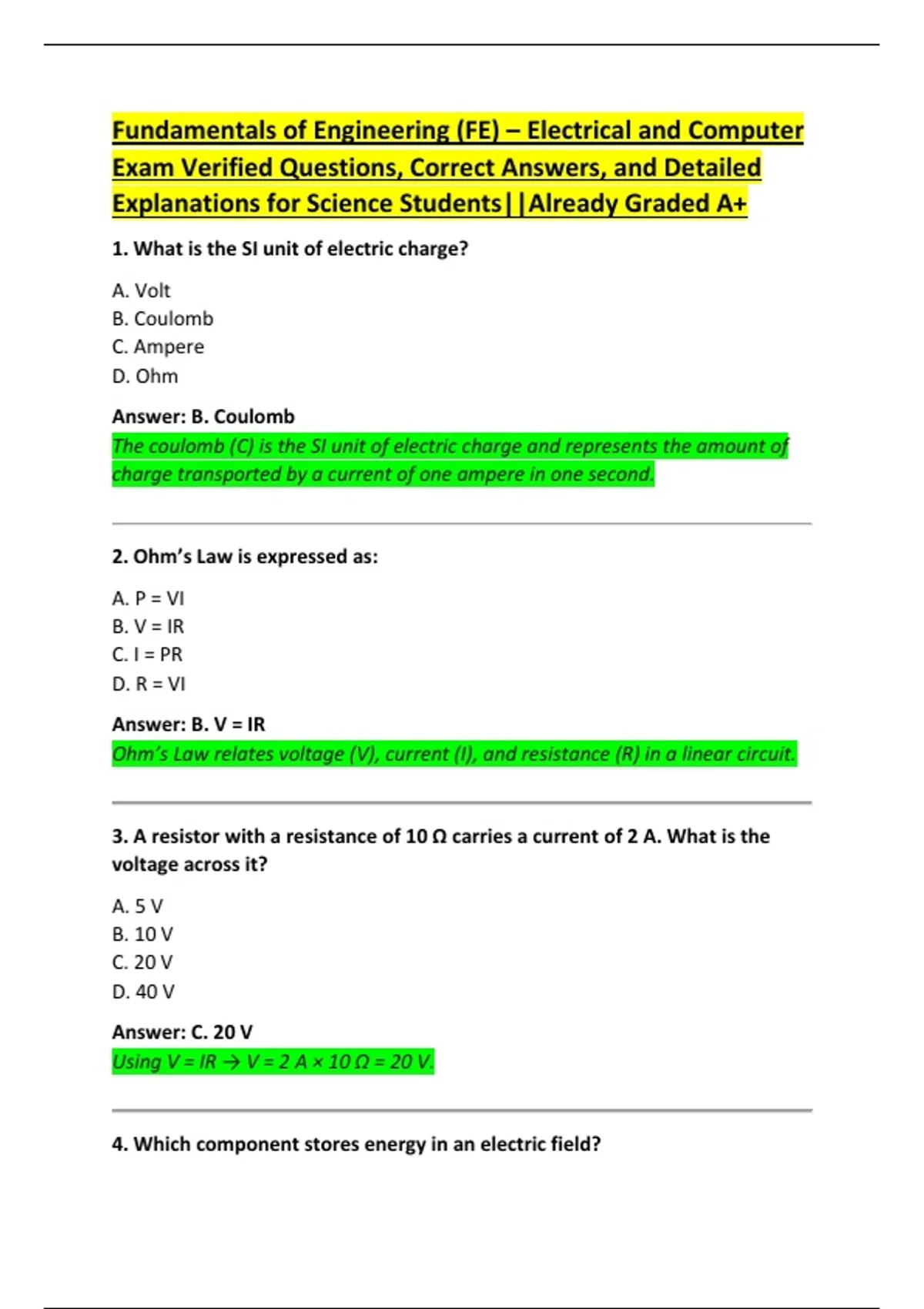 Exam Verified Questions, Correct Answers, and Detailed