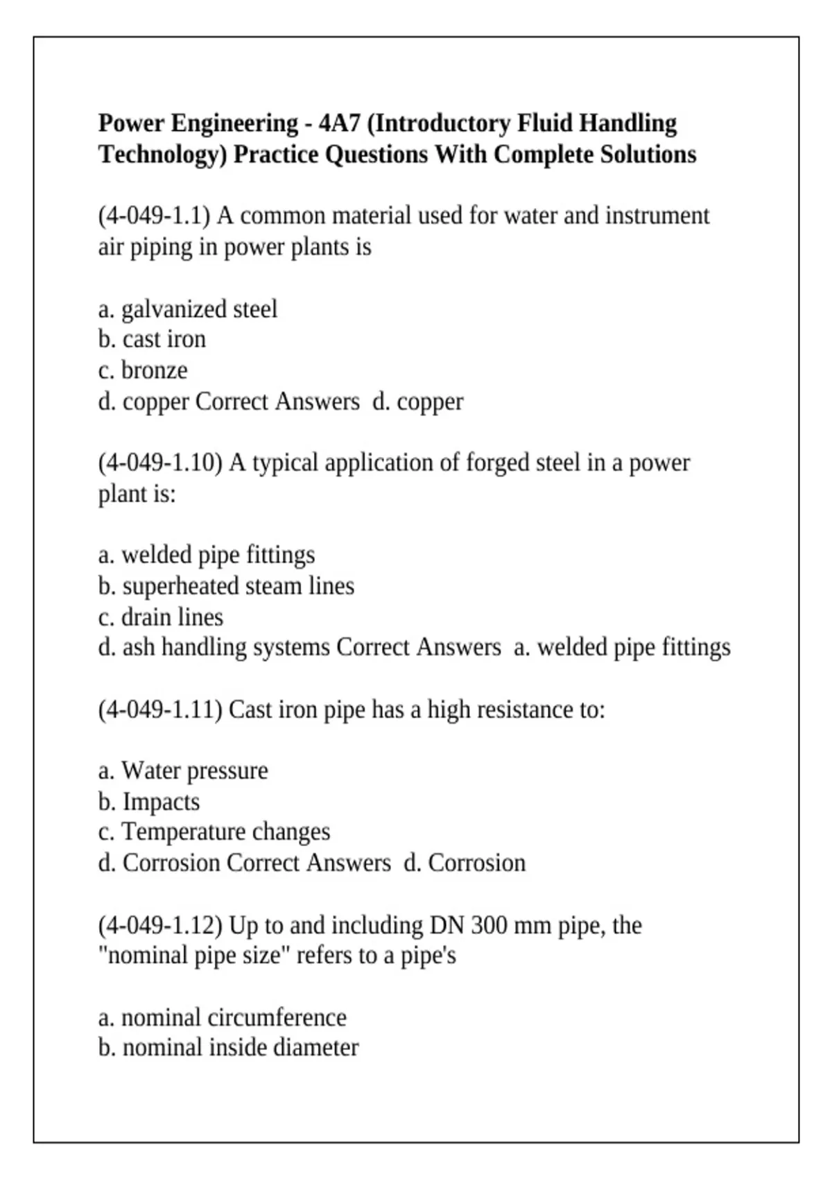 d. ash handling systems Correct Answers a. welded pipe fittings