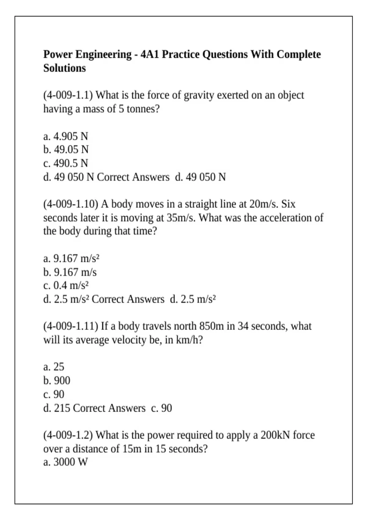 d. 2.5 m/s² Correct Answers d. 2.5 m/s²