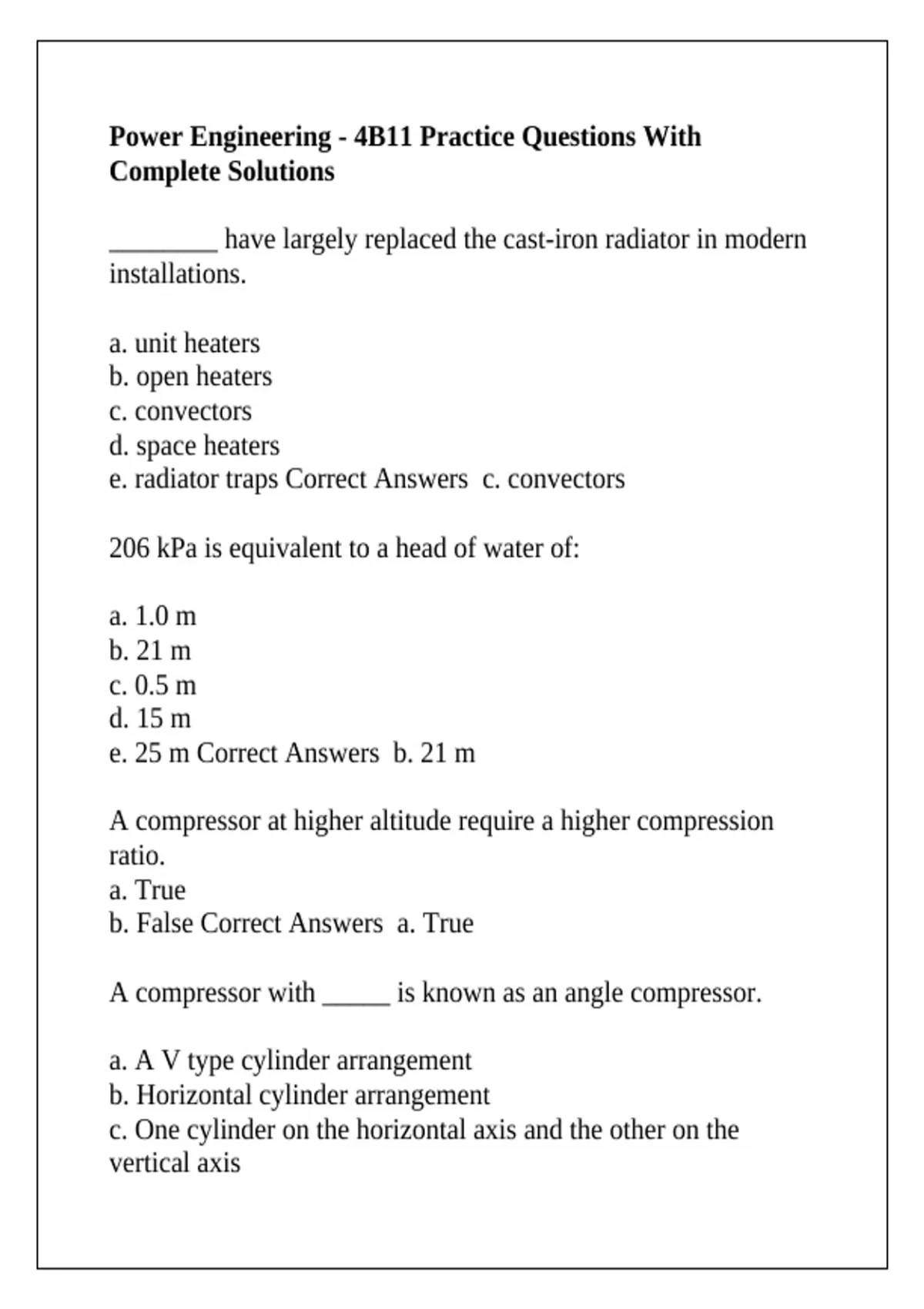 Power Engineering - 4B11 Practice Questions With Complete Solutions