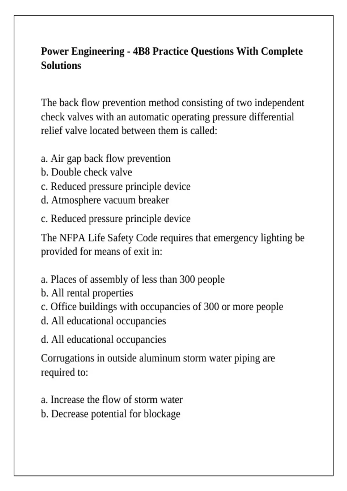 Power Engineering - 4B8 Practice Questions With Complete Solutions