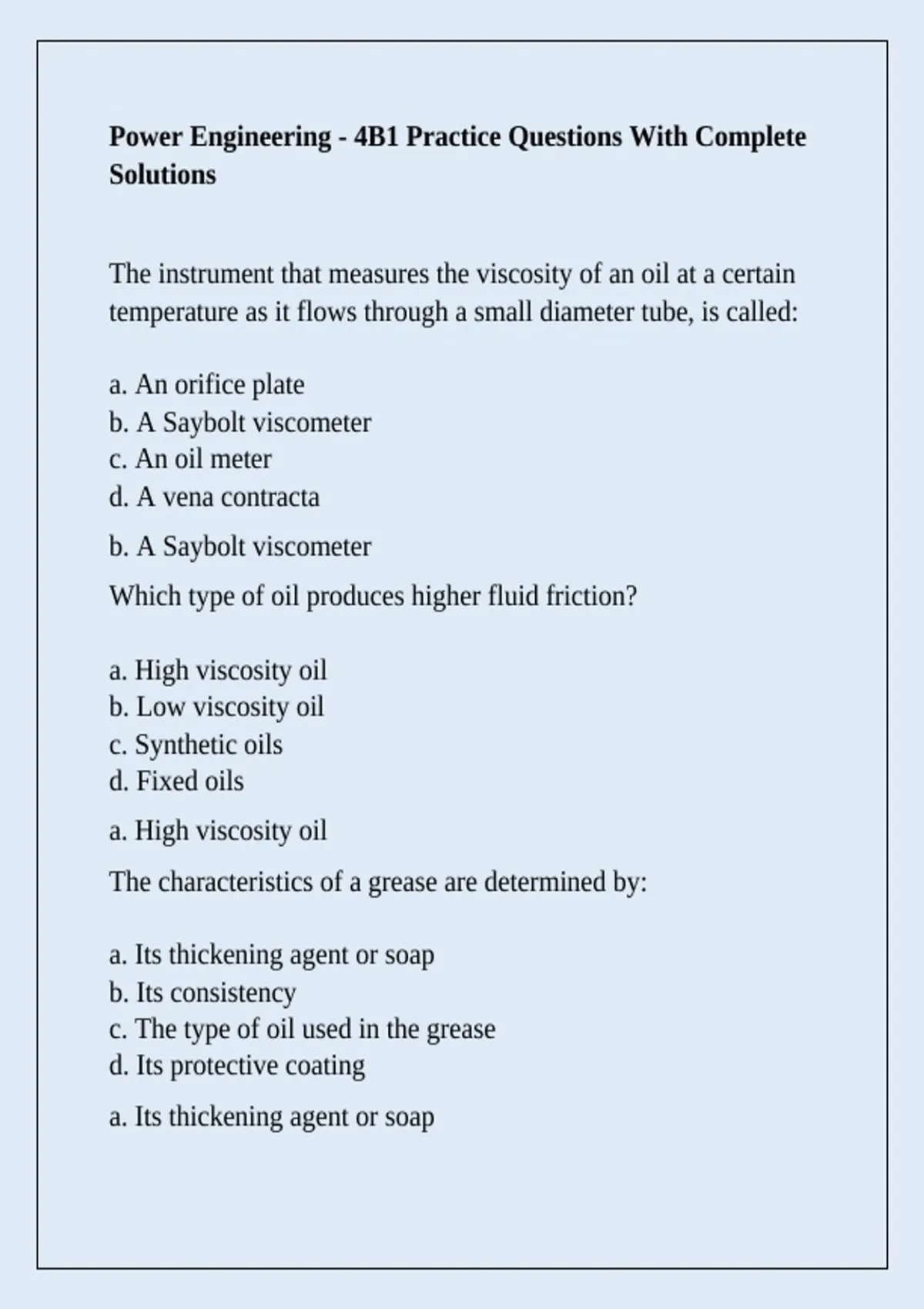 Power Engineering - 4B1 Practice Questions With Complete Solutions
