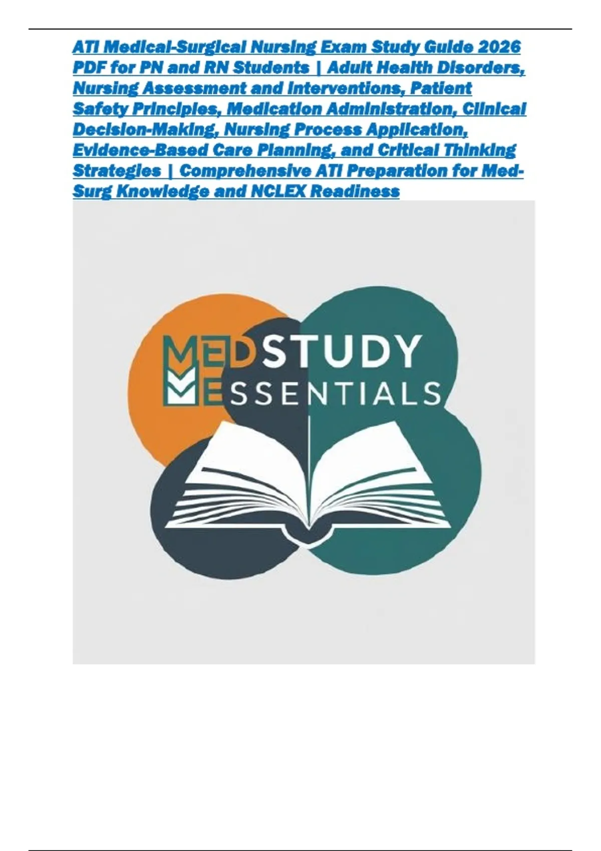 ATI Medical-Surgical Nursing Exam Study Guide 2026 PDF for PN and RN Students | Adult Health Disorders, Nursing Assessment and Interventions, Patient Safety Principles, Medication Administration, Clinical Decision-Making, Nursing Process Application, Evid