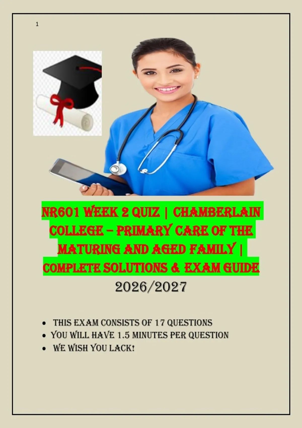 NR601 Week 2 Quiz Answers | Chamberlain Geriatric Primary Care Guide