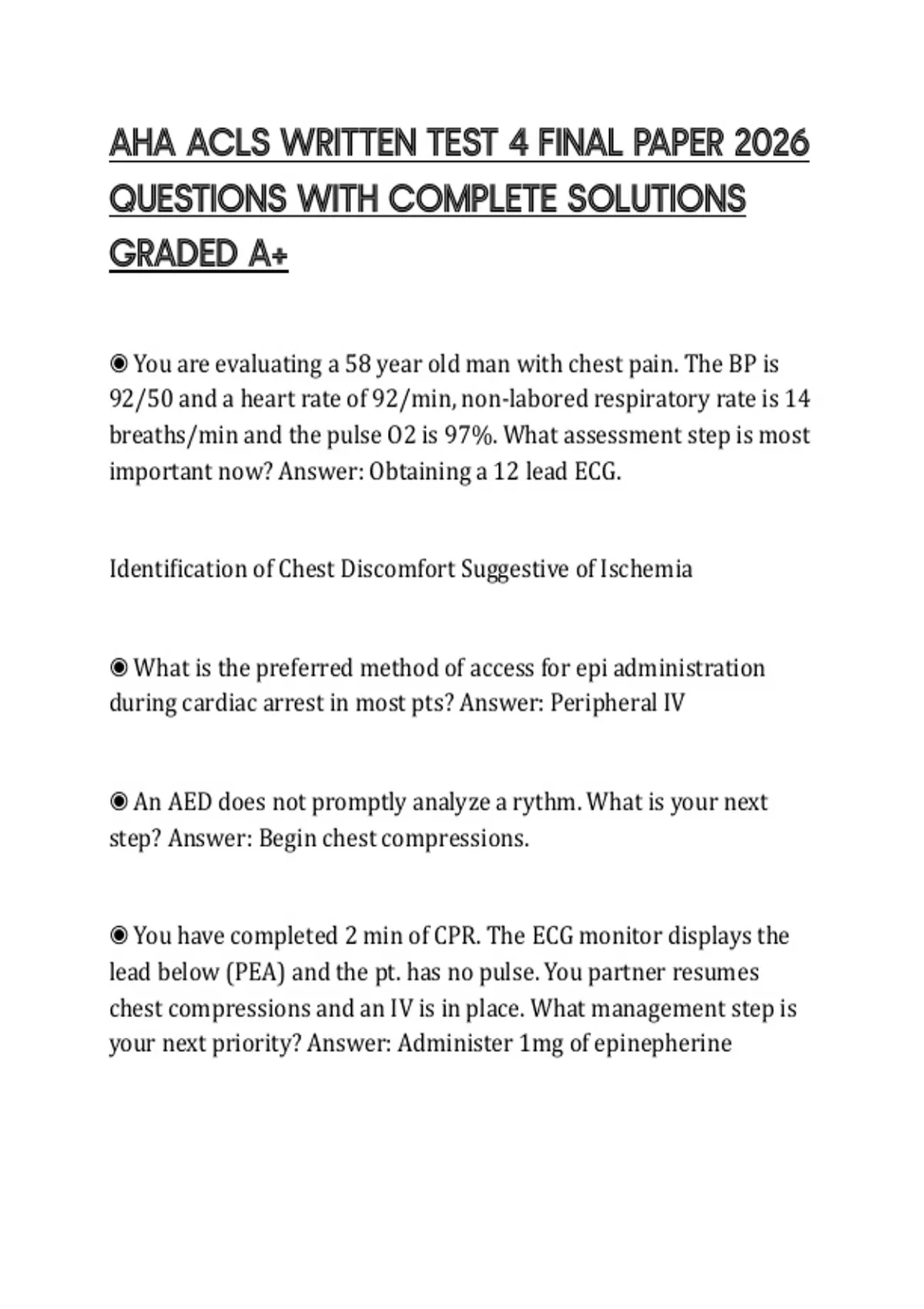 AHA ACLS WRITTEN TEST 4 FINAL PAPER 2026