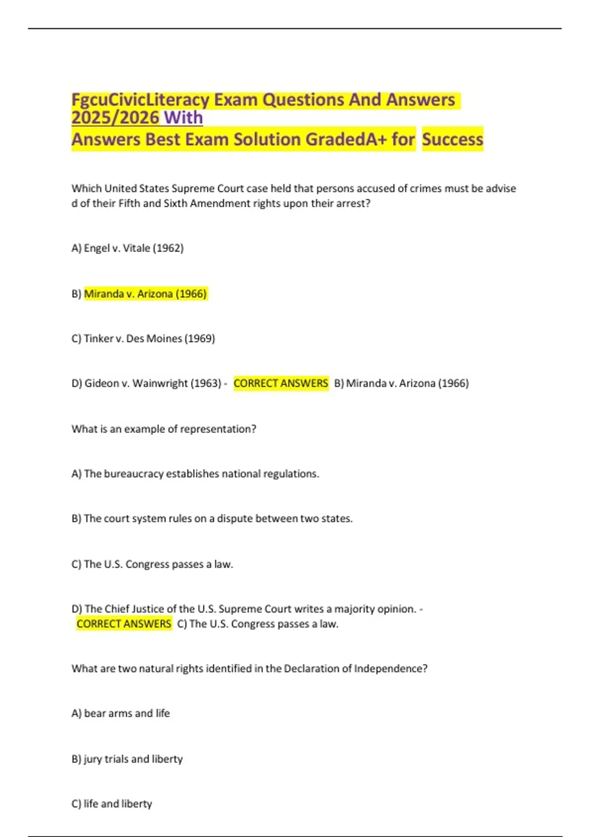 FgcuCivicLiteracy Exam Questions And Answers 2025/2026 With Answers Best Exam Solution GradedA+ for Success