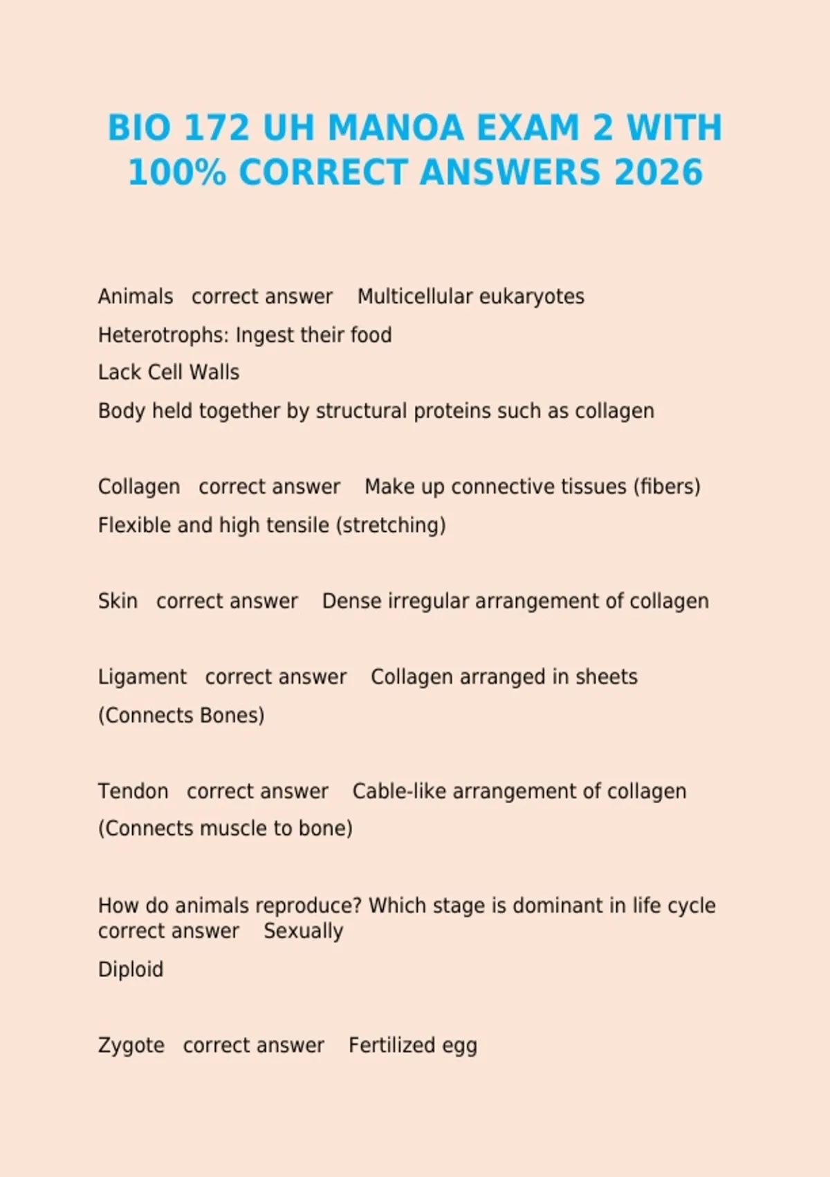 BIO 172 UH MANOA EXAM 2 WITH