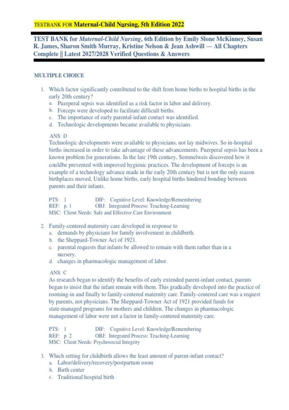 , TESTBANK FOR Maternal-Child N𝔲rsing, 5th Edition 2022