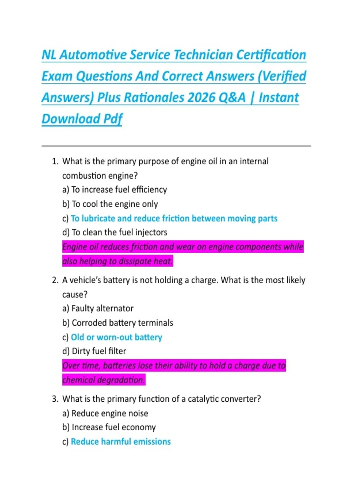 2. A vehicle’s battery is not holding a charge. What is the most likely