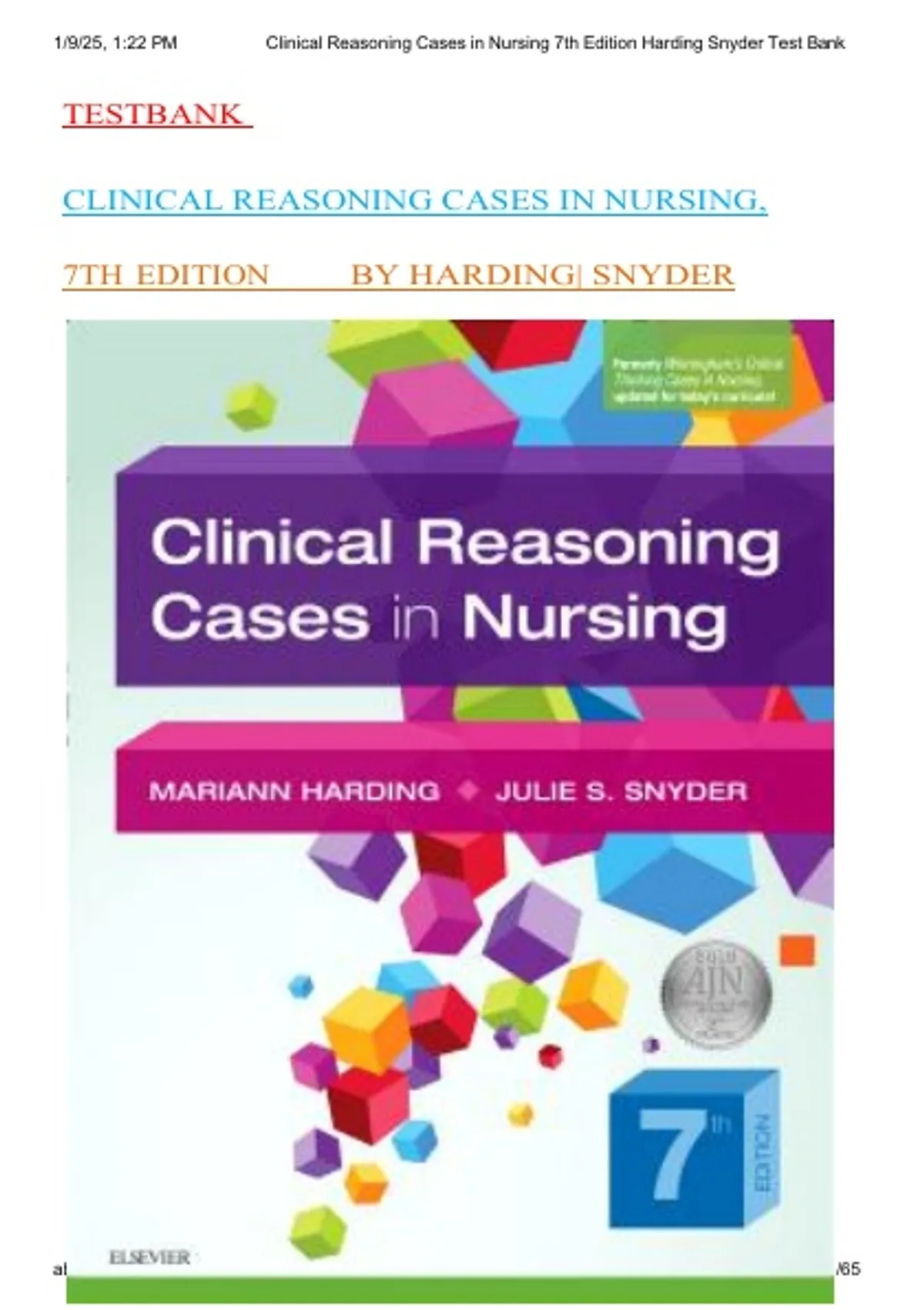 1/9/25, 1:22 PM Clinical Reasoning Cases in Nursing 7th Edition Harding Snyder Test Bank